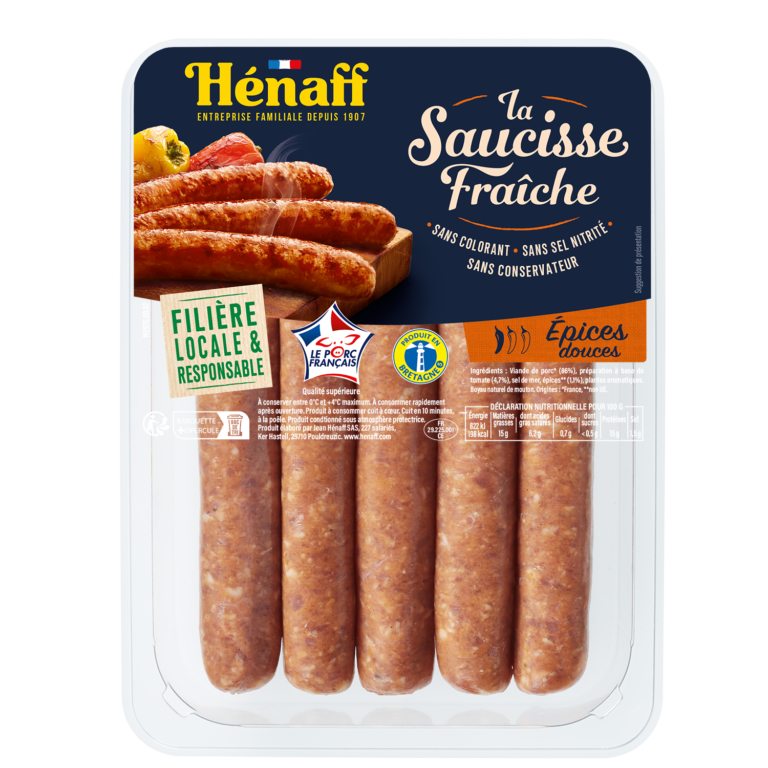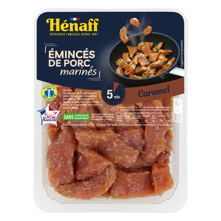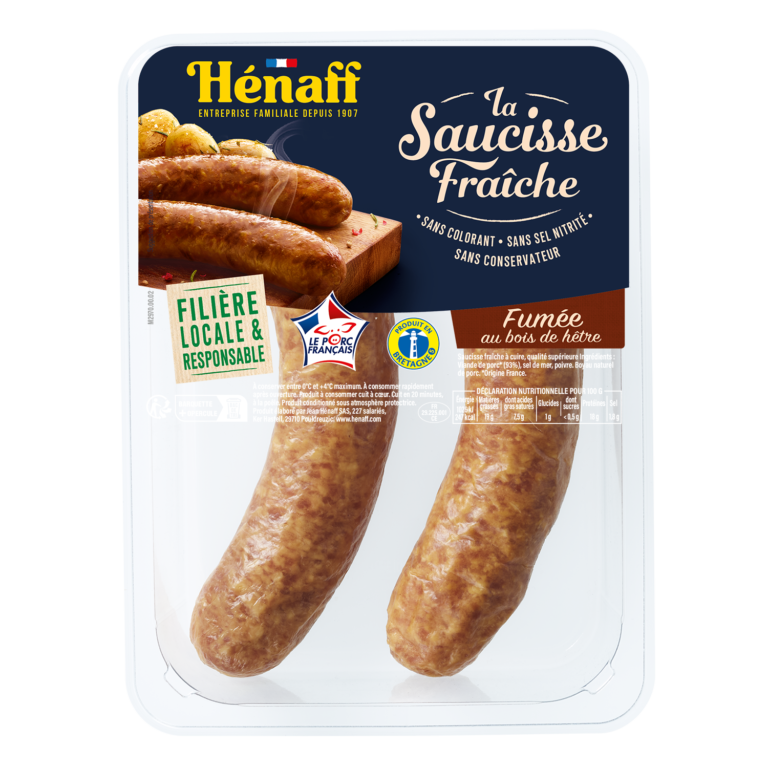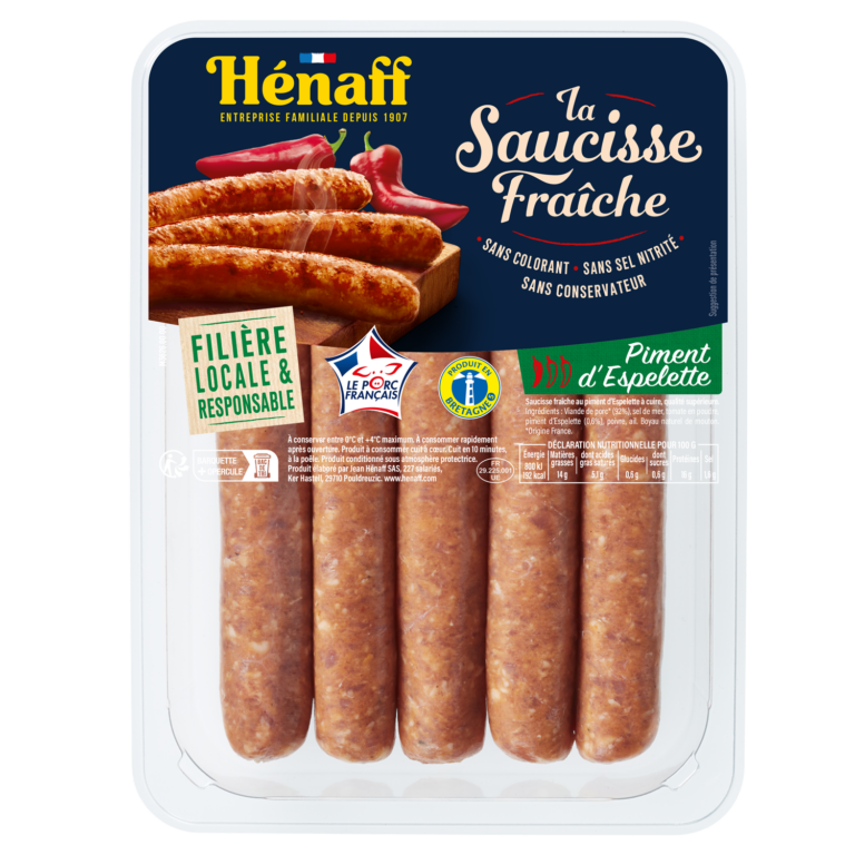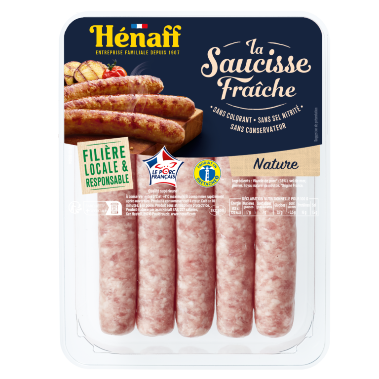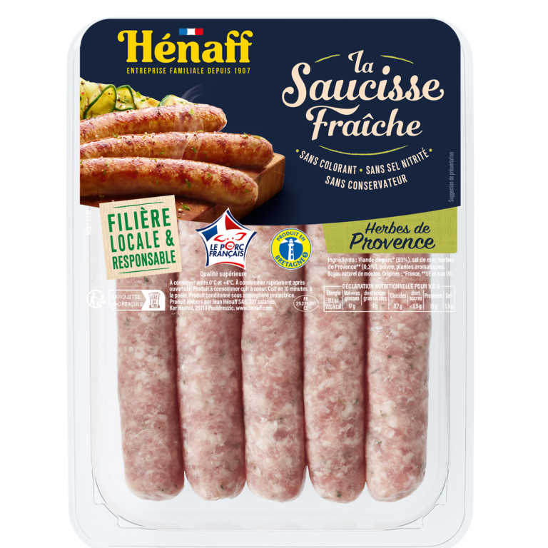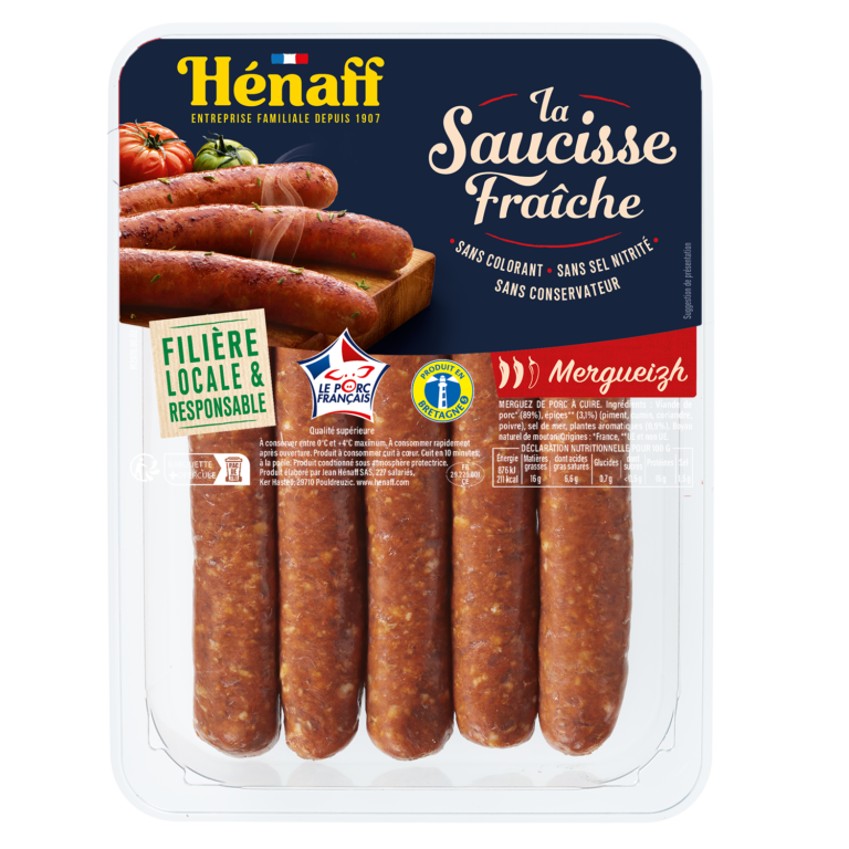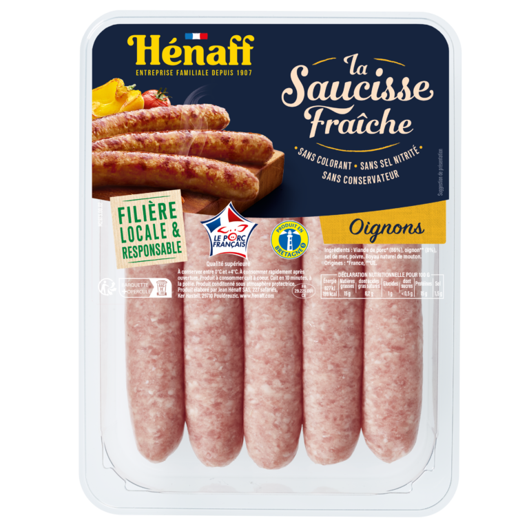 Hénaff est une marque emblématique de la Bretagne et étendard d’une entreprise restée familiale depuis sa création en 1907. Très connue pour son célèbre Pâté Hénaff, Hénaff propose aujourd’hui une large gamme de terrines & rillettes, de tartinables apéritifs et de saucisses fraîches. Une part de la gamme est également disponible en Bio. Des produits bons et bien faits élaborés grâce à un savoir-faire et des méthodes de production uniques acquises depuis plus d’un siècle. Une marque engagée et responsable, qui privilégie l’approvisionnement local depuis toujours. Hénaff a su évoluer avec le temps, fidèle à ses valeurs et son territoire. Tous nos produits sont fabriqués dans nos ateliers de Pouldreuzic dans le Finistère.